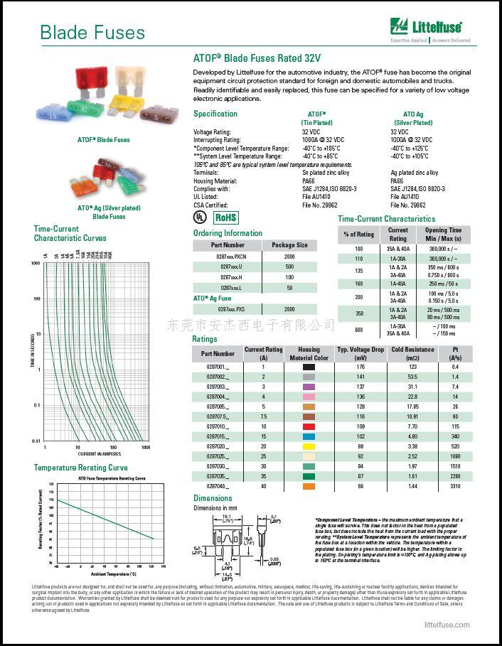 额定电流/电压:1A 2A 3A 4A 5A 7.5A 10A 15A 20A 25A 30A 35A 40A/32V