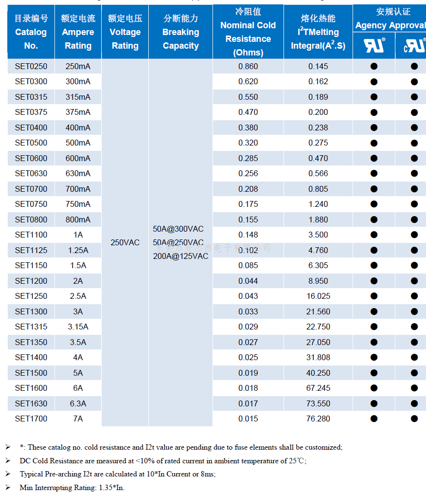 SET贴片保险丝系列