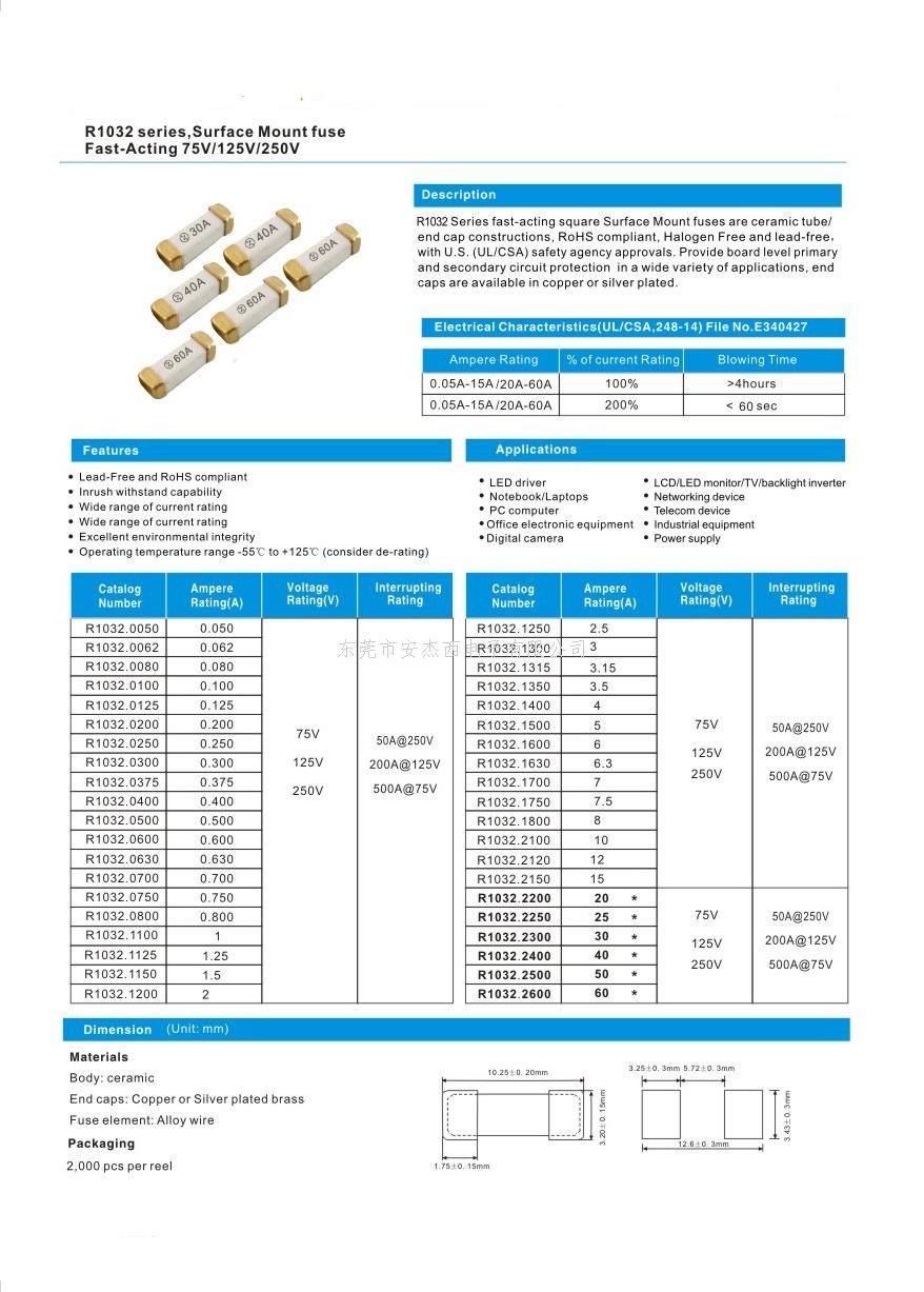 贴片保险丝:应用于电源、开关电源、充电器、LED驱动电源、LED灯具、球泡灯、投光灯线性方案等.