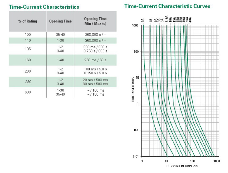 Amps (A): 1, 2, 3, 4, 5, 7.5,10, 15, 20, 25, 30, 35, 40